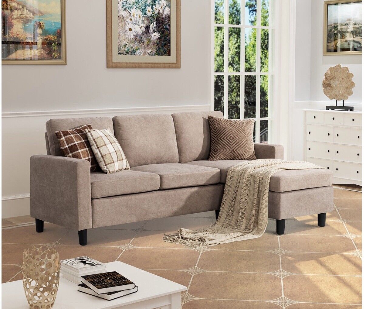 Sofa for three people beige color